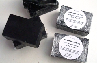Contains: Hemp glycerin soap, activated charcoal, and tea tree essential oil.