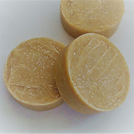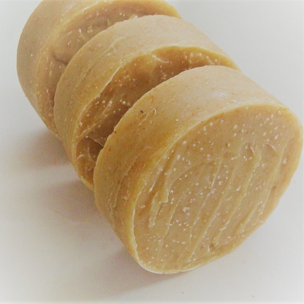 Exfoliating soap with ground apricot shells, and cornmeal. Great to use after gardening, cooking and as a body scrub.